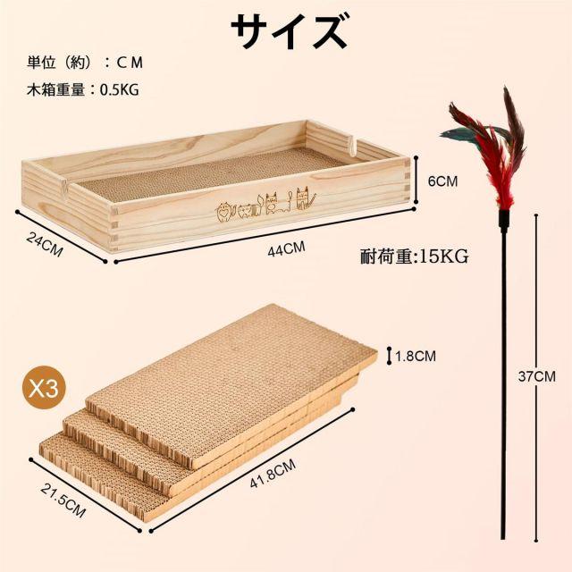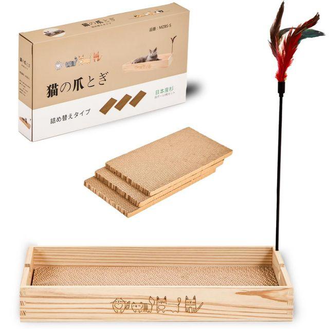 サイズ:44*24*6cm◆商品名:喜之木猫爪研ぎダンボール爪とぎつめとぎケース木製猫ベッド段ボール3枚入り国産杉猫のおもちゃ付き44*24*6cm可愛い猫パターン