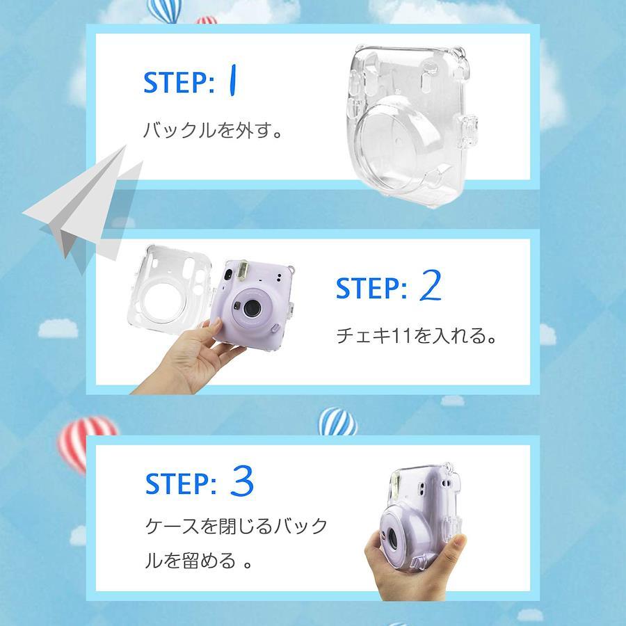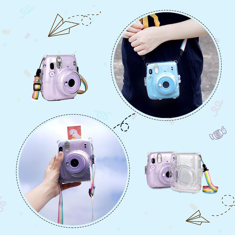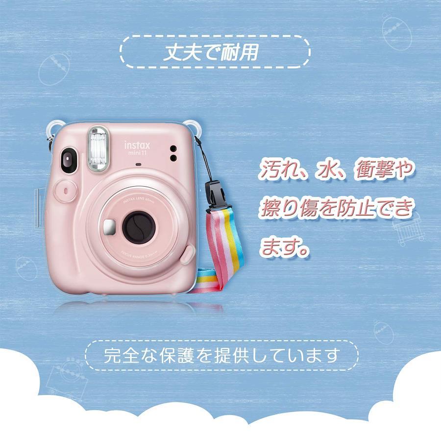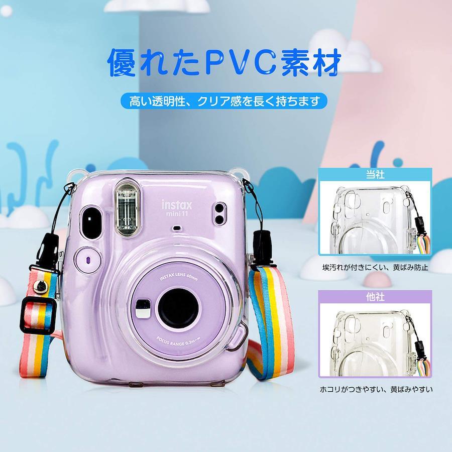 3営業日以内に発送≪新品未開封品≫:対応機種:FUJIFILM インスタントカメラ チェキ instax mini 11/色:透明。クリアケースを透けて、Fujifilm instax カメラの本体が見え、カメラの自然な美しさとエレガントな味わいを披露します。/ケースは硬質PVCケースで採用され、しっかりしあげられ、カメラをホコリ、傷や汚れから保護できます。その同時、写真を撮るときにも、ケースを取り外す必要がなし、とても便利です。/調節可能なレインボーショルダーストラップ付き、常に着けてお出掛けの際にも首から掛けれるので落とさずにすんでとても使いがってがいいです。/誕生日、結婚式、クリスマス、その他の祭りのための素晴らしい贈り物としての御購入もいいです。