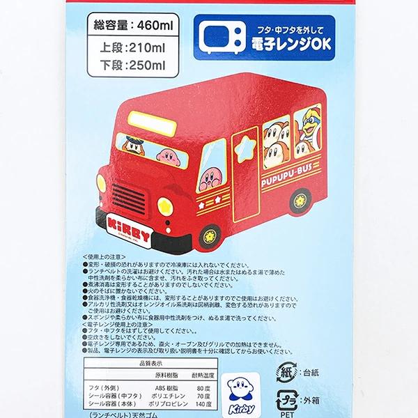 星のカービィのバス型ランチボックスです♪カービィたちが乗ったバス型がキュート♪まるで乗り物のおもちゃのような、見ててウキウキするランチケース♪2段なので、ご飯とおかずが分けれます♪フタ・中フタを外せば、電子レンズOKで嬉しい♪汁漏れしにくいシール容器なのも安心♪お子さんの苦手な食べ物もこのランチケースなら食べてくれるかも☆彡※食洗機 使用不可!【総容量:460ml、上段:210ml、下段:250ml】