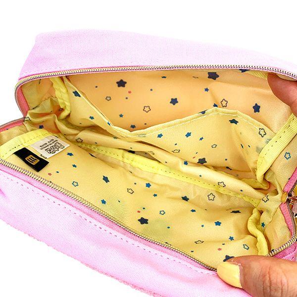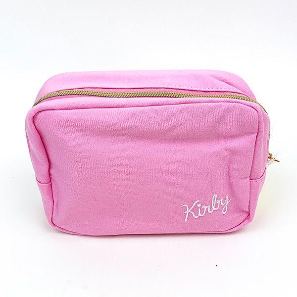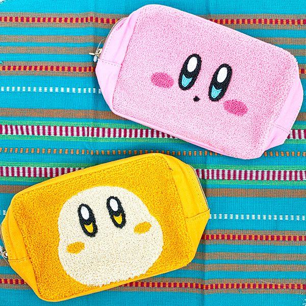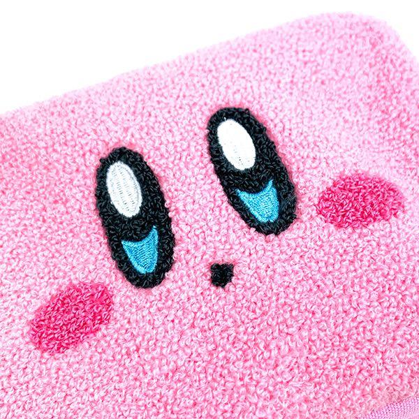 カービィのお顔がドーンとデザインされたポーチです♪表面は人気のサガラ刺繍でモコモコかわいい!!マチもあり、たっぷり入ります◎