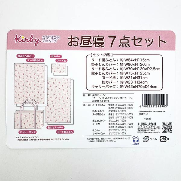 保育園・幼稚園でのお昼寝やお出かけ先でもお子様が心地よいお昼寝を手軽にできるお昼寝布団 7点セットです。掛け布団・敷き布団・まくら・布団カバー・持ち運びに便利な収納バッグの7点。それぞれのカバーは取り外し可能で洗えるのでいつも清潔にお使い頂けます。収納バッグには『お名前』『組』が書き込めるネームタグ付き。【セット内容】1.ヌード掛ふとん(約:W84×H115cm) 2.掛ふとんカバー(約:W90×H120cm) 3.ヌード敷ふとん(約:W70×H120×2.5cm) 4.敷ふとんカバー(約:W75×H125cm) 5.ヌード枕(約:W21×H31cm) 6.枕カバー(約:W23×H34cm) 7.キャリーバッグ(約:W42×H70×14cm)