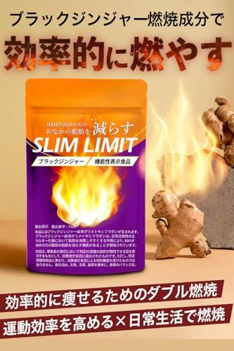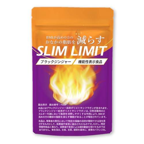 ?【スリムリミットとは】BMIが高めの方のウエスト周囲径を減らす機能性があるブラックジンジャー由来(ポリメトキシフラボン)を主成分としたサポートサプリメントです。主成分の「 ブラックジンジャー由来ポリメトキシフラボン 」には、ウエスト周囲径を減らすのを助ける機能がありますので、肥満気味な方、BMIが高めの方、肥満気味でお腹の脂肪やウエスト周囲径が気になる方におすすめです。 ?【機能性表示食品】機能性関与成分「ブラックジンジャー由来ポリメトシフラボン」配合。自然由来の燃焼成分があなたの脂肪を減らす作用があることが報告されています。日本では「黒ウコン」と呼ばれアルギニンや必須アミノ酸など豊富な栄養素を含んでいます。ブラックジンジャーが日常の活動時にBMIが高めの方の脂肪の消費を助ける作用があると報告されています。 ?【スリムリミットは、こんな方におすすめ】たくさん試してきた方、結果が出なかった方、ズボラさんも大丈夫。ブラックジンジャーは日本の活動時にBMIが高めの方の脂肪の活動消費を助ける作用があるので、効率的なダイエットをサポートできます。 ?【お腹脂肪を減少させる】ブラックジンジャー由来ポリメトシフラボンが日常生活時のエネルギー代謝において脂肪を消費しやすくする作用により、BMIが高めの方の腹部の脂肪を減らす作用があることが報告されています。ブラックジンジャーが内側からボディを作ります。 ?【安心・安全の国内製造】毎日お召し上がりいただくものだからこそ、高い基準をクリアした国内GMP工場で国内生産されています。安心・安全にお届けするため、徹底した品質管理を行っています。