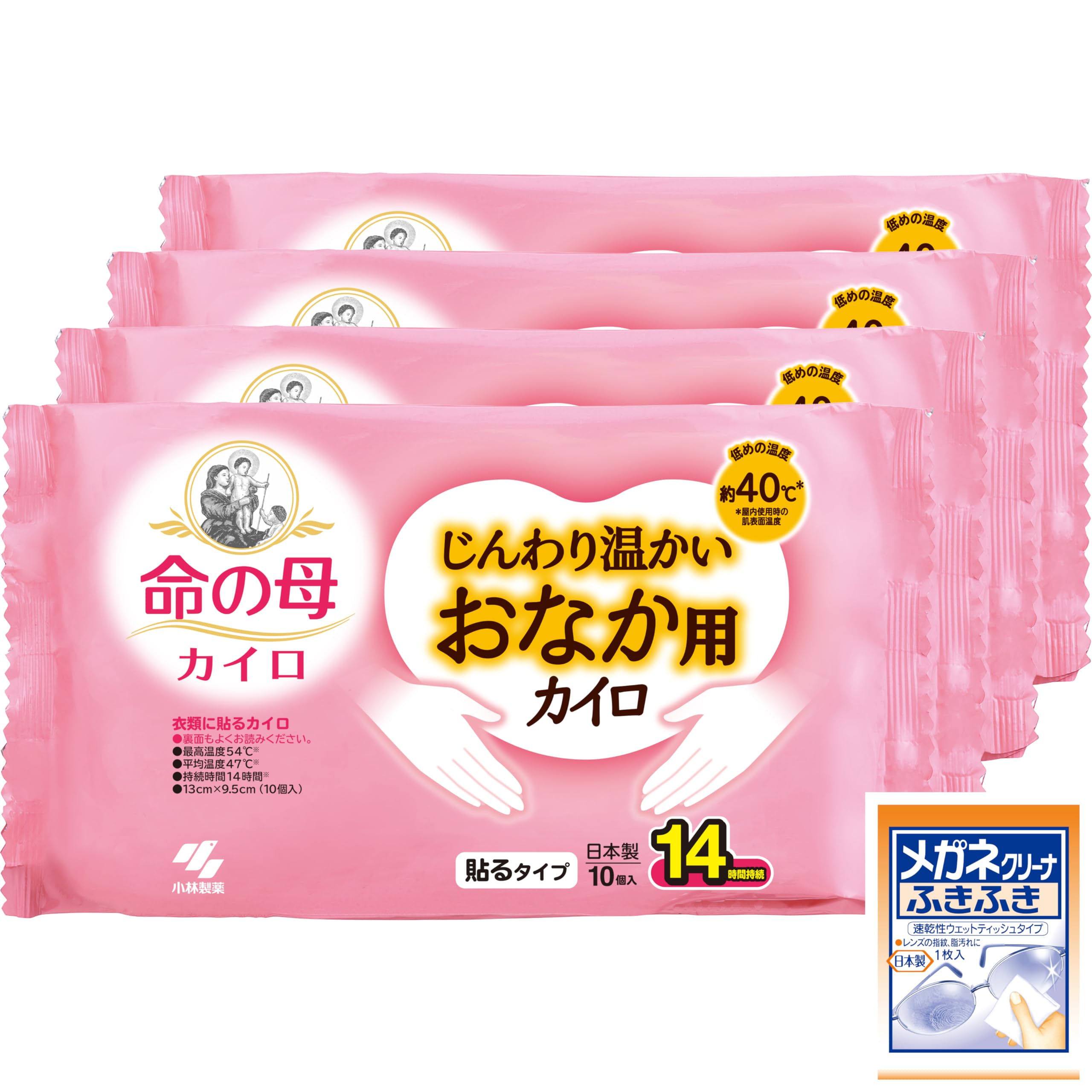Kiribai Inochi no Haha Heat Pad for Stomach [Official] Gently Warming Heat Pads for Clothing, 10 Heat Pads x 4 Packs, For Chills During Menstruation, etc., Kobayashi Pharmaceutical, Bonus Included [Bulk Purchase]