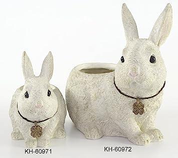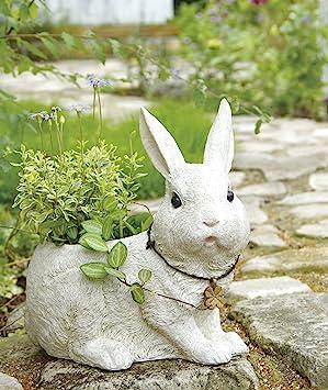 ■可愛いウサギがお客様をお出迎え。■お花といっしょに、繊細な造りの動物が、玄関や庭を楽しく華やかに演出します。■アンティーク感がある可愛いクローバーチャーム付■底に水抜き穴付※植物は付属しておりません