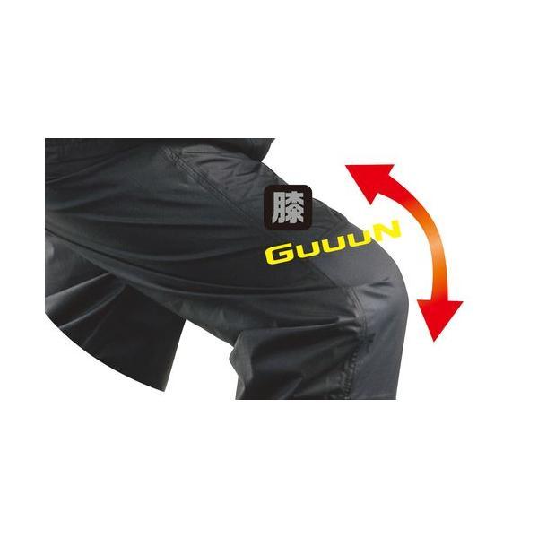 ●背中・膝など作業時に突っ張る部位には透湿性ストレッチ生地を採用し、他の部位には耐水性&透湿性に特化した生地を使用