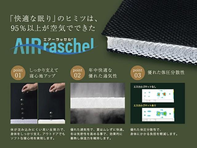 「快適な眠り」のヒミツは95%以上が空気でできた「AIR raschel」素材体の沈み込みにくい高反発力で体をしっかり支え、アウトドアでもソフトな寝心地を実現します。更に優れた体圧分散性で、身体にかかる負担を軽減します。