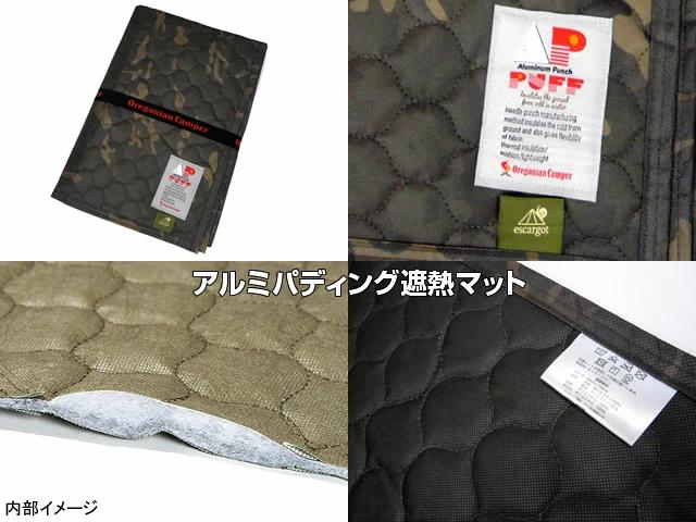 Oregonian Camperとのコラボ商品である遮熱マットは中綿にアルミパンチ綿を使用し、底冷えに効果を発揮。電気カーペット等を使用する際の節電にも有効。アウトドアでの使用だけでなく、ご自宅等でもいかがでしょうか。