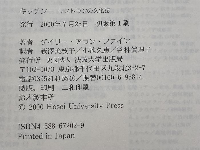 商品名:キッチン: レストランの文化誌 法政大学出版局 ゲイリー・アラン ファイン