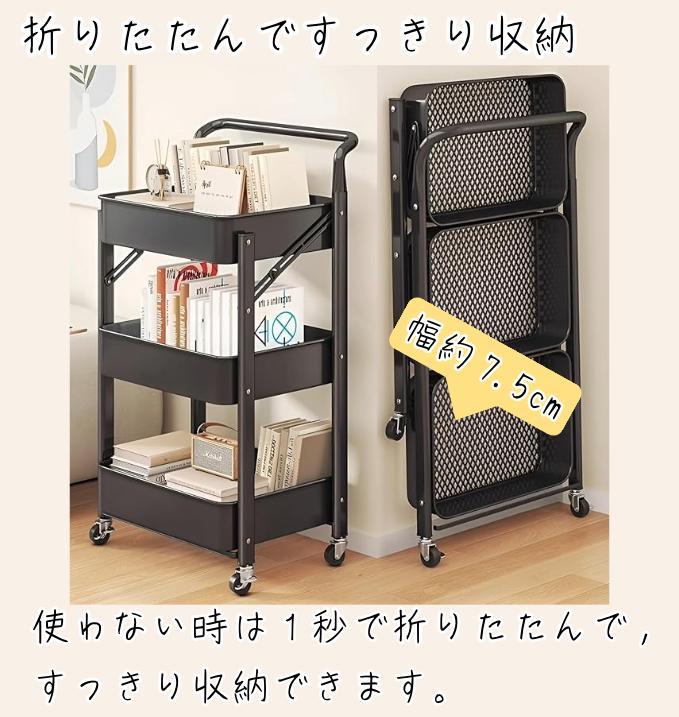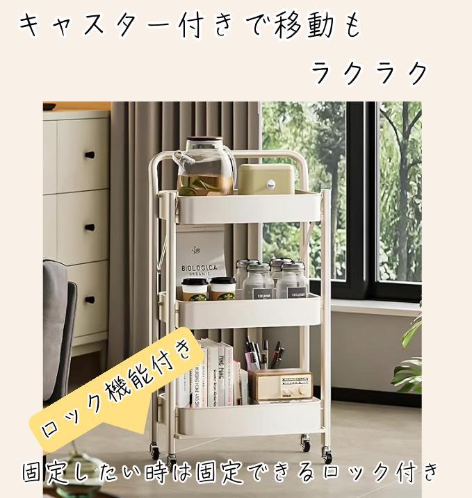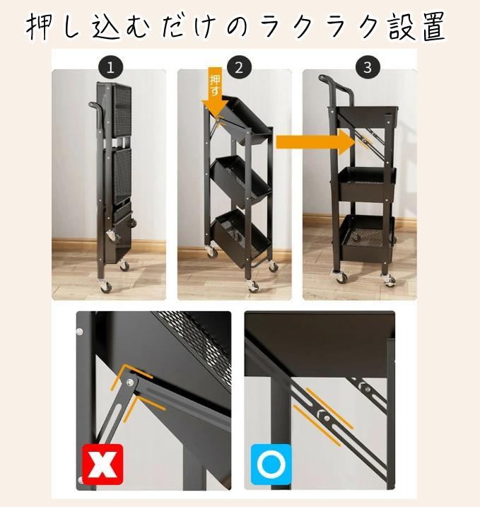 組立不要!ワンタッチで使えるスリム収納ワゴン