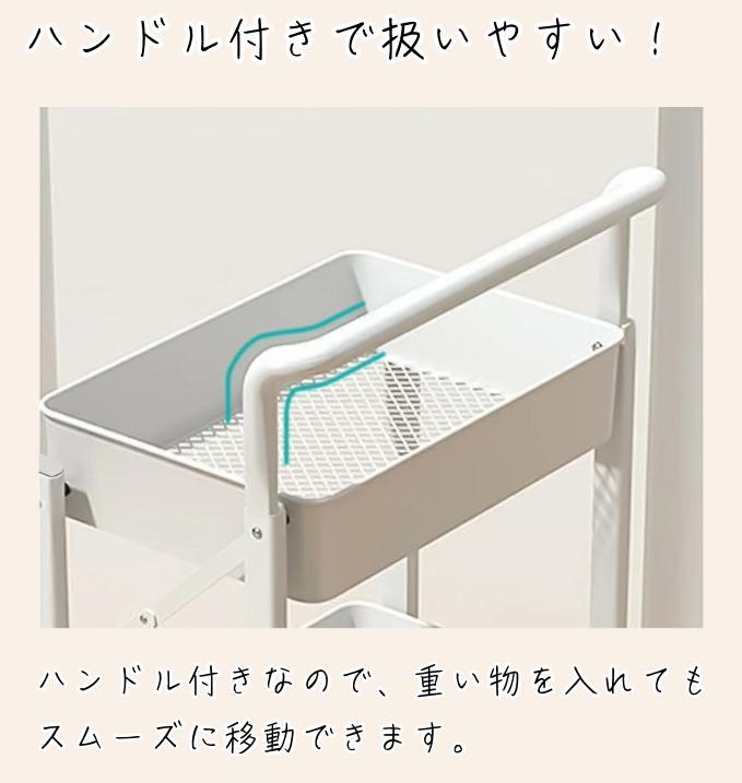 組立不要 隙間収納 ストッパー付き 取っ手付き ステンレス製キッチンワゴン