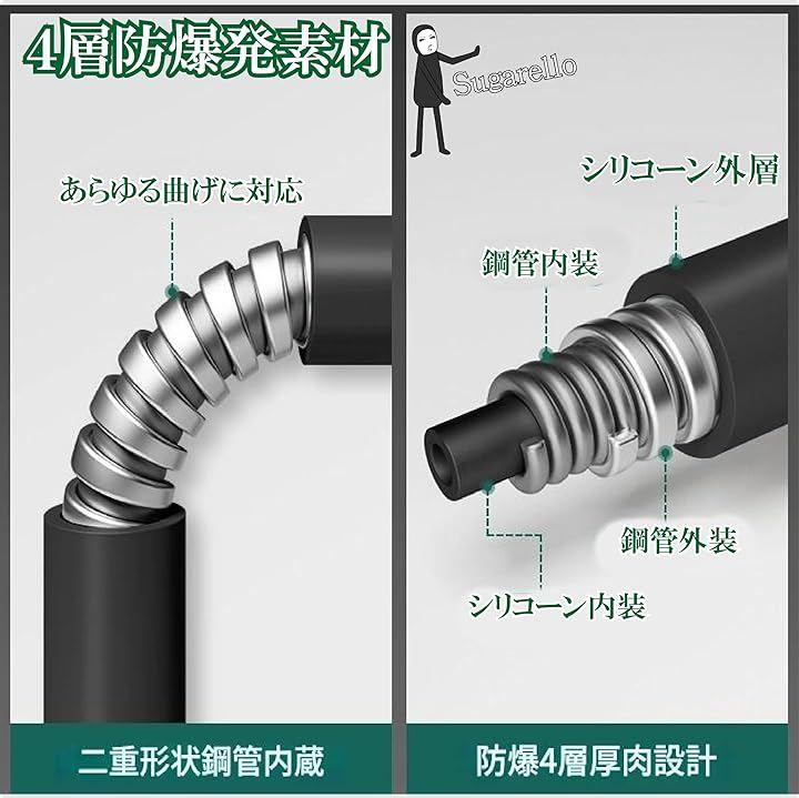 ・ホースは外部と内部にシリコンホースを配置し、その中間にフレキシブル鋼管を配置しえいます。