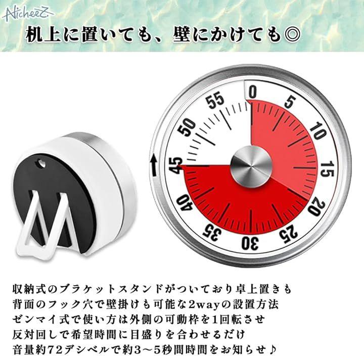 60分以内の時間の管理に便利な電池不要のアナログタイプ。