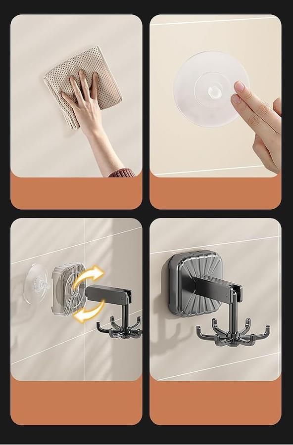 「強力吸着」このフックは強力な吸盤を備えており、壁にしっかりと固定されます。