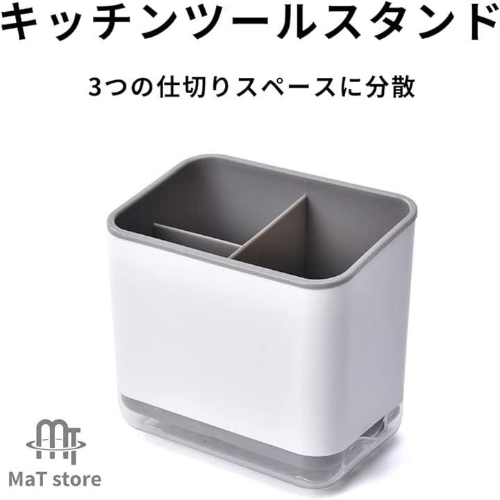 ・「簡単に水切りが出来て安心」キッチンツールスタンドは、傾けると水が抜ける仕組みになっております。