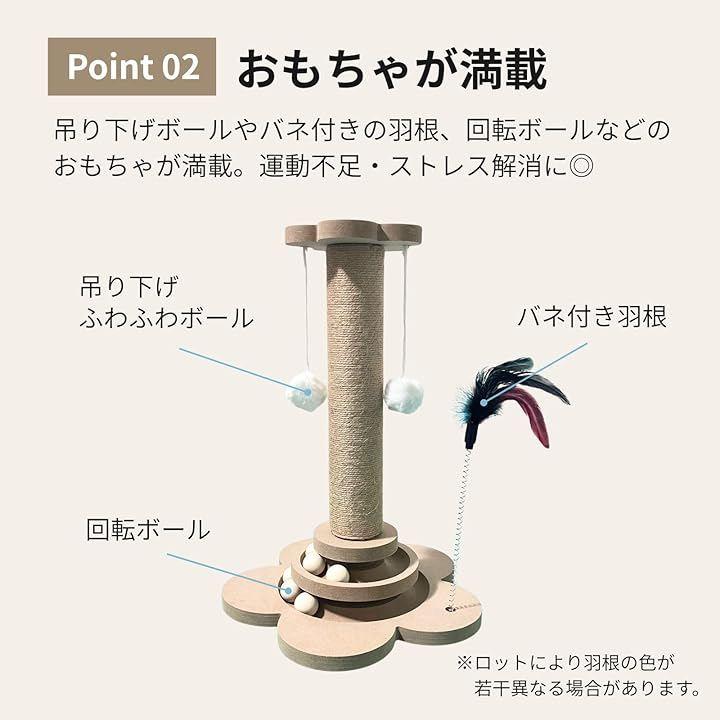 「吊り下げボール&バネ付き羽根」ふわふわボールとバネ付き羽根おもちゃが猫の狩猟本能を刺激します。