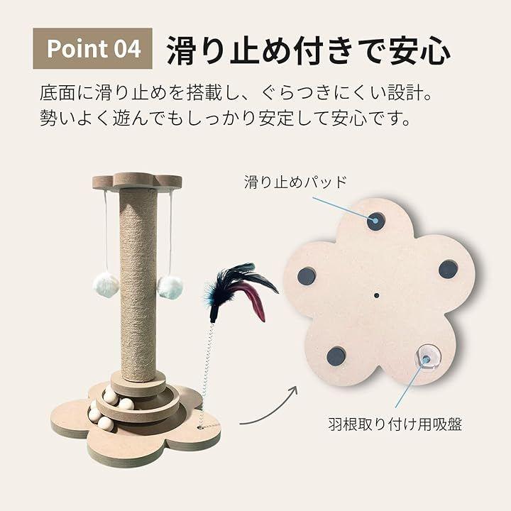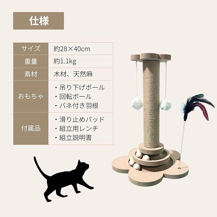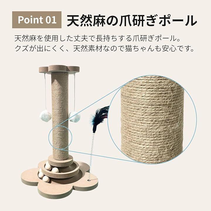 天然麻を使った丈夫なポールで、しっかり爪とぎができて長持ちします。