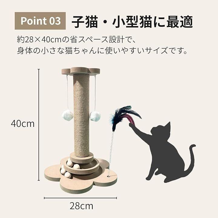 子猫や小型猫にちょうど良いサイズ感のコンパクト爪とぎポール。