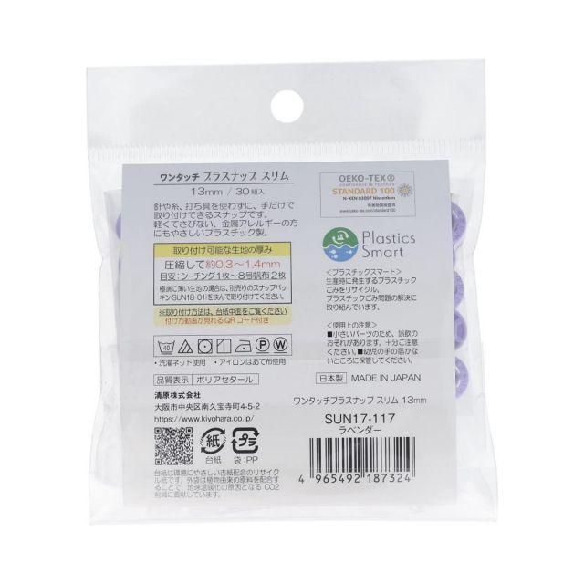 スタイル:直径13mm大容量30組入◆商品名:KIYOHARAサンコッコーワンタッチプラスナップスリム大容量30組入直径13mmラベンダーSUN17-117