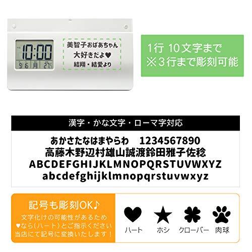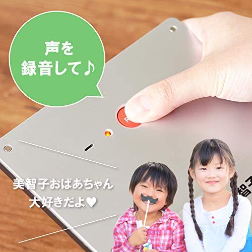 お孫さんの声を録音して写真を入れて、じぃじばぁばにっこり!なプレゼントに【名入れについて】名入れ内容の連絡は、ご購入後すぐにお願いします。詳細は商品説明または商品画像内の案内をご覧ください。何かご不明な点がありましたら「@kizamu.com」までご連絡ください。■材質:ABS ■サイズ:170mm×150mm×27mm ■重量:約260g ■時計 日付表示 温度表示 アラーム・スヌーズ機能 ■音声録音機能(10秒間アラーム音に設定可) ※録音した音声は「スヌーズ/再生ボタン」を押すことでいつでも再生可能です■写真サイズ100×150mm ■単4電池×2本(付属) ※電池が切れたらすぐに交換してください 音声が消えてしまう場合がございます
