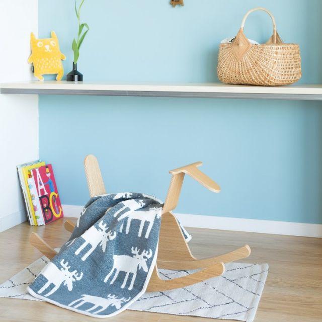 70×90cmのミニサイズブランケットは、ベビーギフトに大人気です。デザインがかわいい、温かい、出産祝いの予算にも合う、3拍子揃ったミニブランケットのギフト。動物にも生産者にも優しい、サステナブルな背景から生まれたウールを使用し、ベビーにとって初めての毛布として寒い秋冬をぬくもりのある温かさで包み込んでくれますよ。