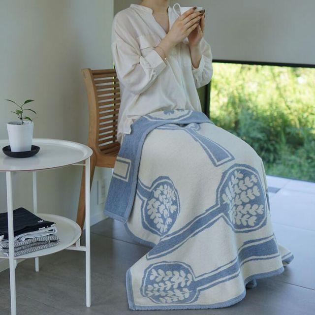 シュニールコットンハーフブランケットFORESTSPOON(ブルー)