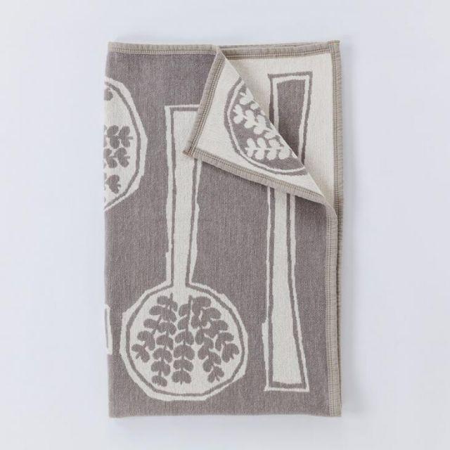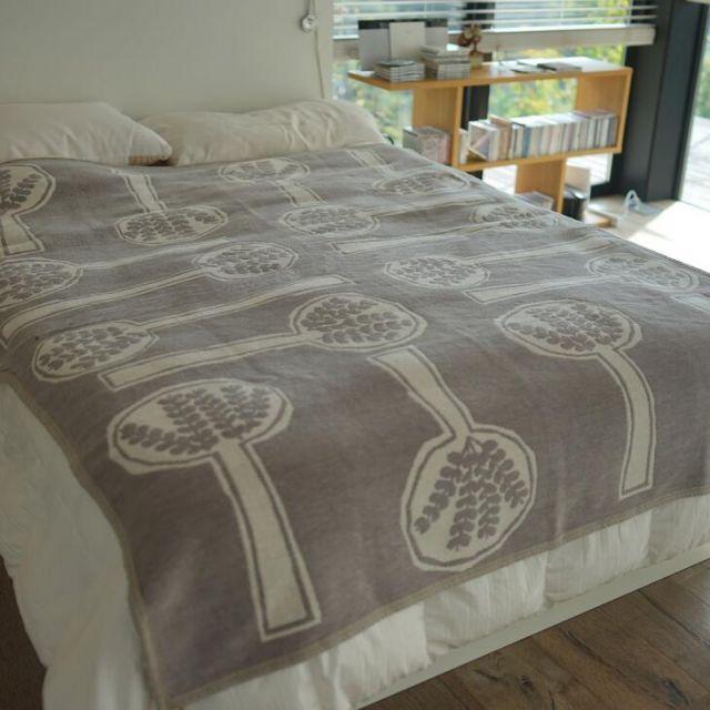 「FORESTSPOON」は、2014年にミナペルホネンとクリッパンがはじめてコットンブランケットのコラボレーションを開始した年に生まれた、記念すべき1枚です。スプーンの中に広がる森の世界は、デザイナーの皆川明氏が「ピクニックにでかけるイメージ」でデザインしました。植物の生命力あふれるモチーフが、お部屋に躍動感を生み出します。