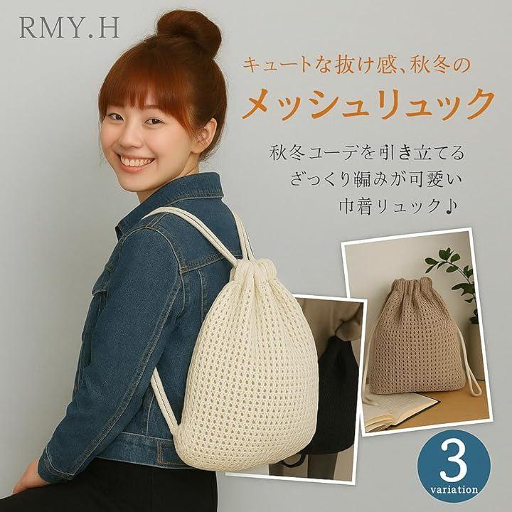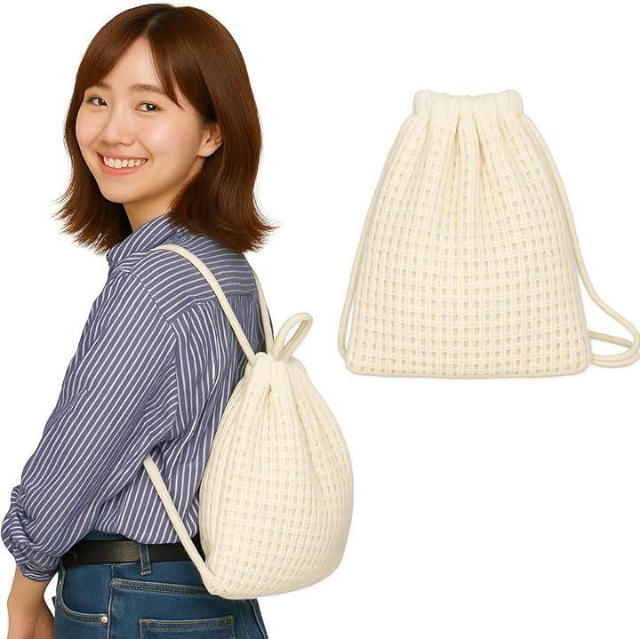 製品概要 韓国っぽスタイルにぴったりな「メッシュ巾着バッグ」は、軽やかで透け感のある素材が魅力のナップサック型メッシュリュック。