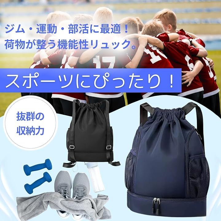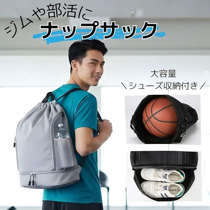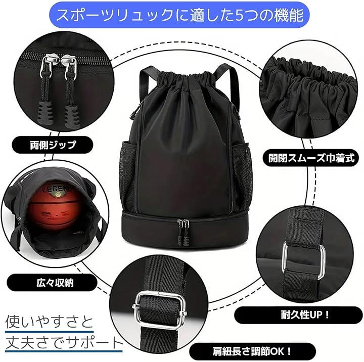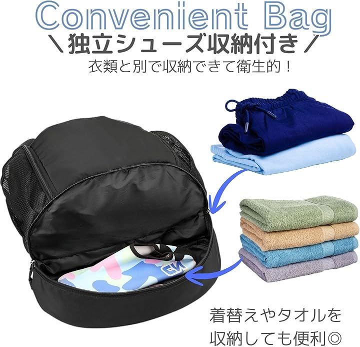 スポーツも通勤もこれ1つ」 バスケットボール、サッカーボール、スパイク、着替えまでしっかり入る、20~35L可変の大容量スポーツバッグ。