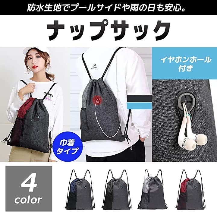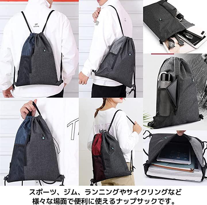 タブレット、折り畳み傘、財布や手帳、身の回り品など入る大容量ナップサックです。