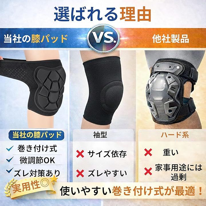 膝つき作業の不快感を軽減*(*体感は床材・体重で変動)。