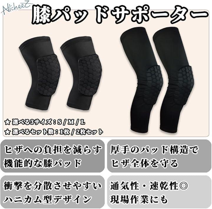 「商品内容」 膝パッドサポーター(Sサイズ片足用1本/両足2本セット、Mサイズ片足用1本/両足用2本セット、Lサイズ片足用1本/両足用2本セット) 材質: カラー:ブラック Sサイズ:長さ/約29cm 上部履き口/約26cm~約32cm 下部履き口/約16cm~約19cm Mサイズ:長さ/約30cm 上部履き口/約28cm~約34cm 下部履き口/約18cm~約21cm Lサイズ:長さ/約31cm 上部履き口/約30cm~約39cm 下部履き口/約20cm~約23cm