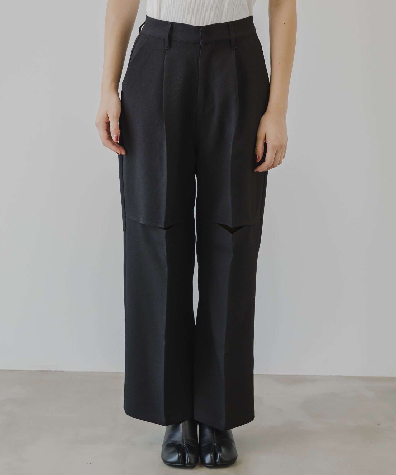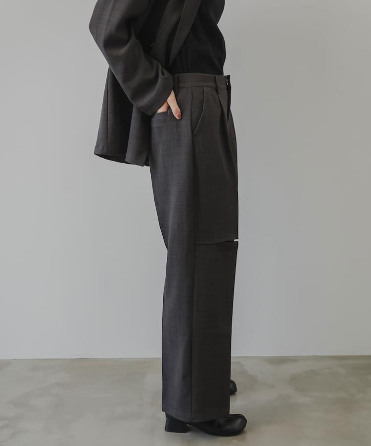 セットアップ着用も可能な膝スリットスラックスパンツ