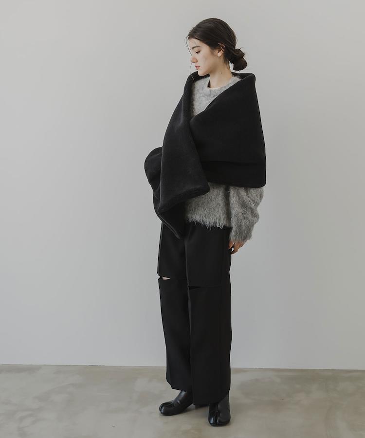 膝に施されたスリットがシンプルな中にもアクセントを加えスタイリッシュな印象に。