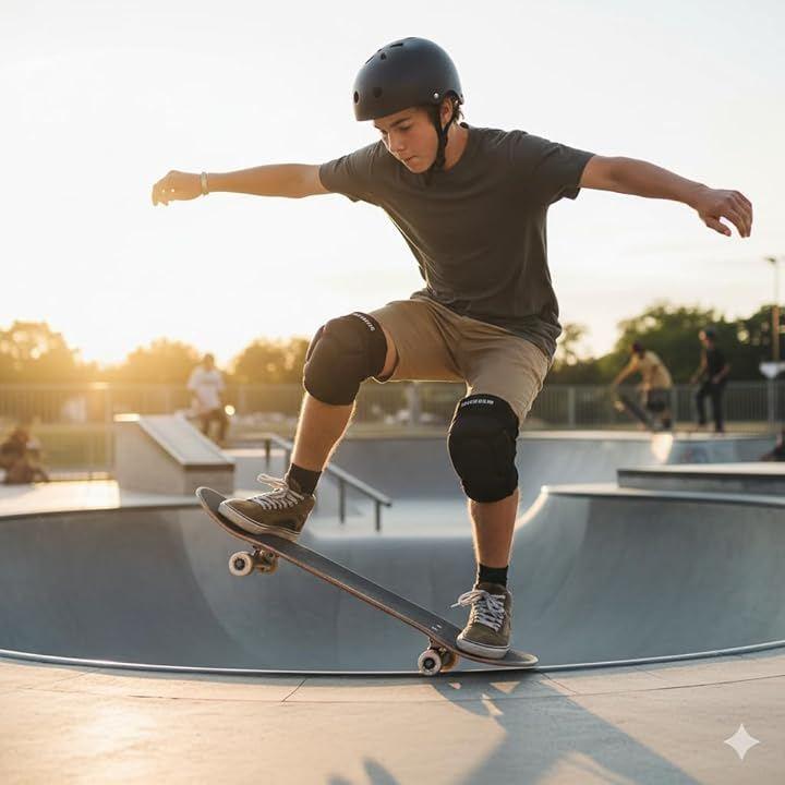 スケートボードのトリックやジャンプに最適な膝サポーターです。