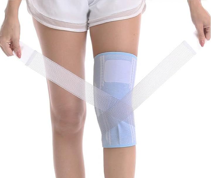 Knee support taping for sports, elderly, and cold weather protection. Highly breathable mesh tape. One piece for left or right knee. Includes training instructions.