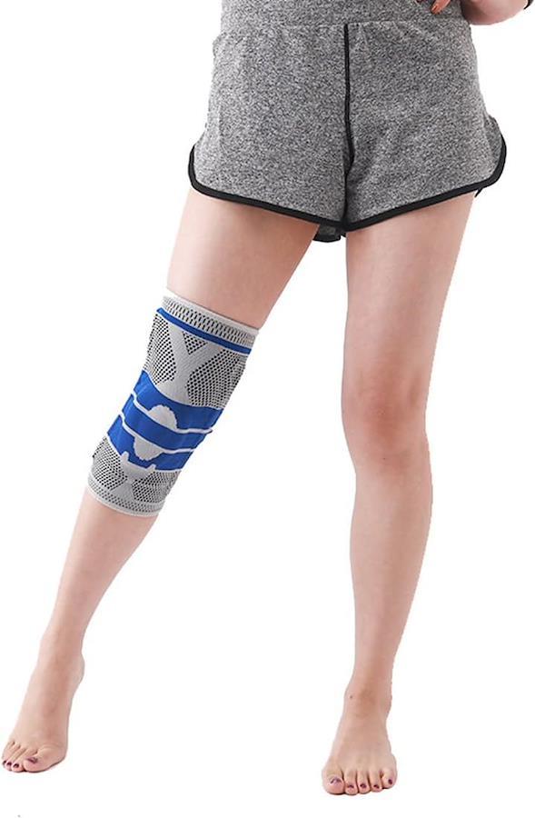 ・「安心のサポート機能」 膝部分はシリコンパットで衝撃吸収、バネ状支柱で伸縮をサポートします。