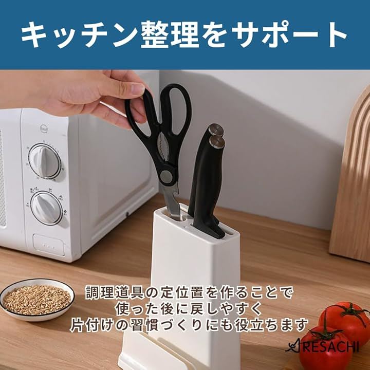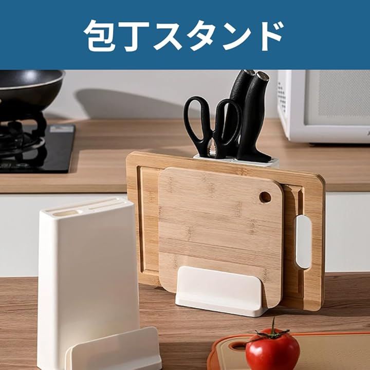 包丁やまな板、ハサミなど、よく使う調理道具をまとめて立てて収納できるため、調理台やシンク周りがすっきりと整いやすくなります。