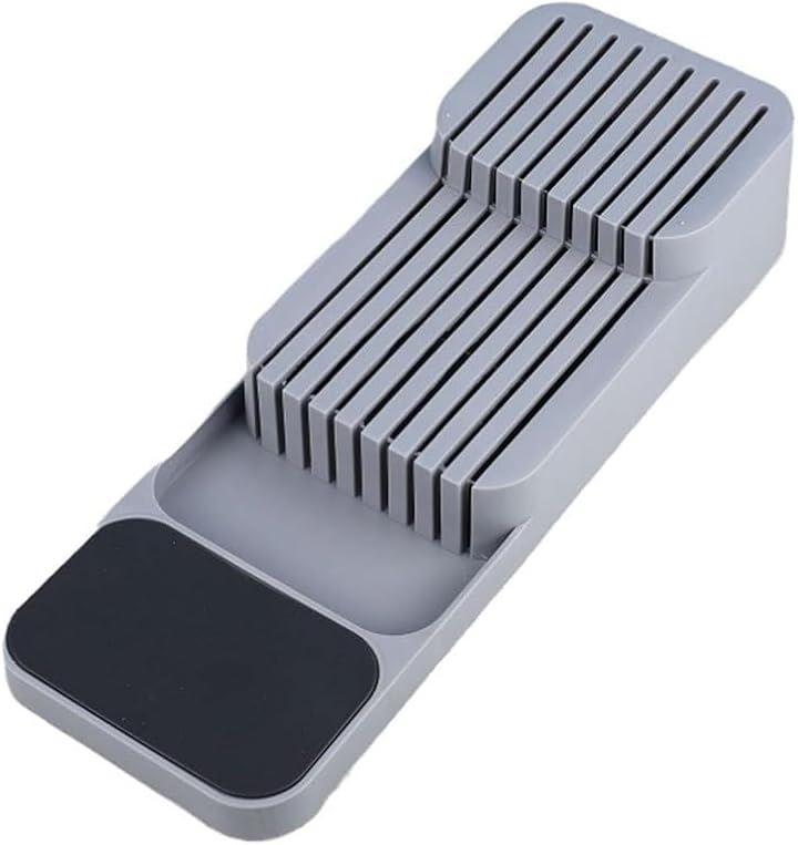 2段デザインの包丁スタンドで、小型ナイフを上段、大型包丁を下段と最大9本の包丁やナイフが収納可能。