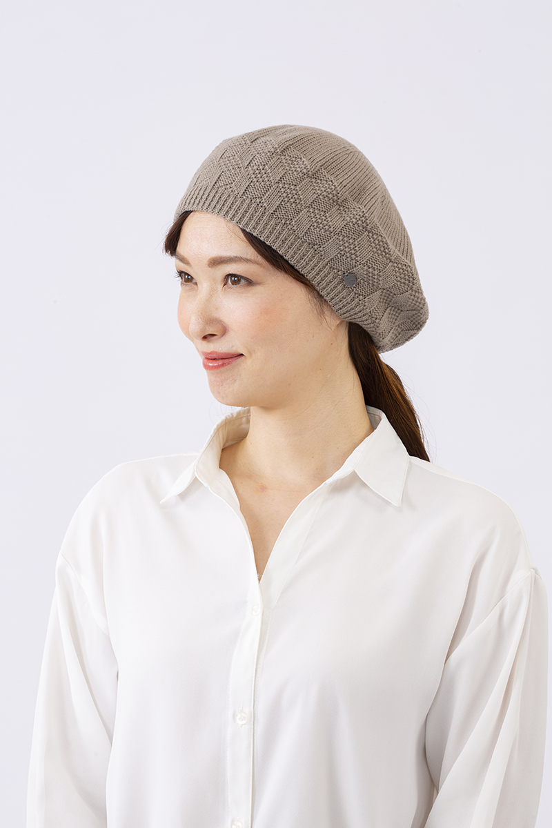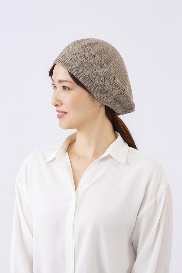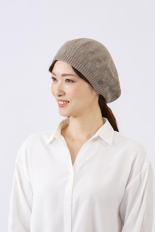 ★オシャレなヒロココシノのニットベレー帽!*柔らかな肌触りの素材で、外出先や室内でも長時間オシャレに被る事ができます。*被り方を選ばない小振りなベレー帽子で程よく頭にフィットします。*サッと被ればお洒落に変身。〇急な外出〇旅行時〇洗髪が出来ない時〇入院時