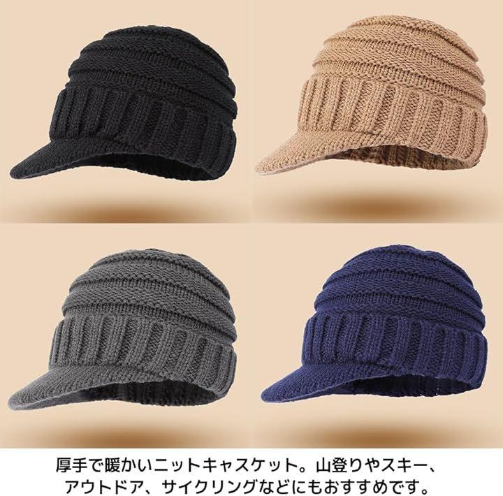大きめのつば付きニット帽で、伸縮性のある素材なので頭大きさ問わず様々な人が着用できるニットキャスケットです。