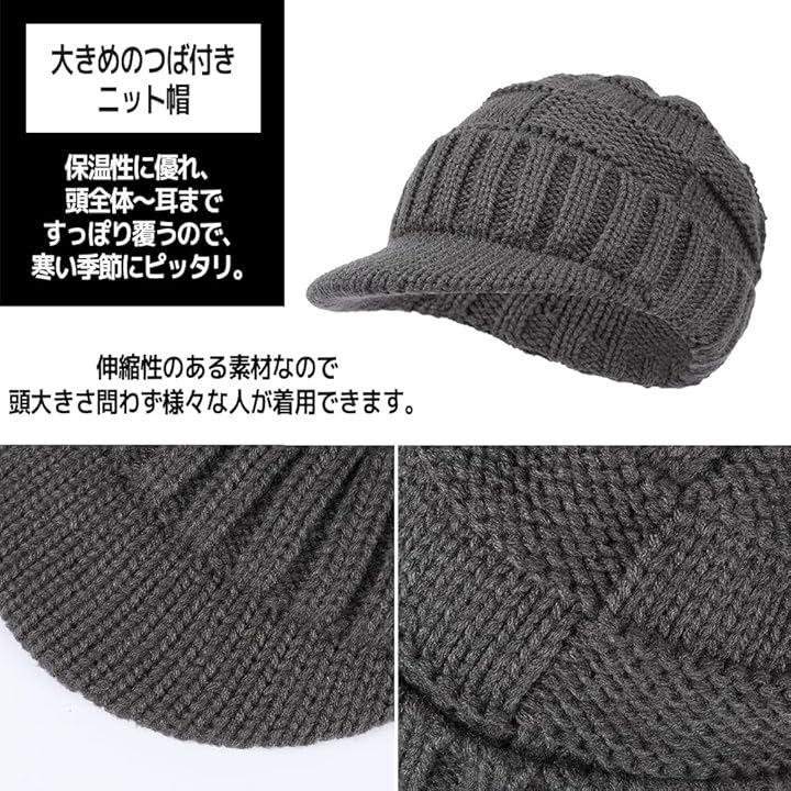 大きめのつば付きニット帽で、伸縮性のある素材なので頭大きさ問わず様々な人が着用できるニットキャスケットです。