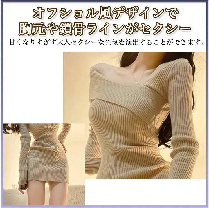 デコルテラインを美しく引き立てるオフショル風デザインが、大人の色気を漂わせるニットワンピース。
