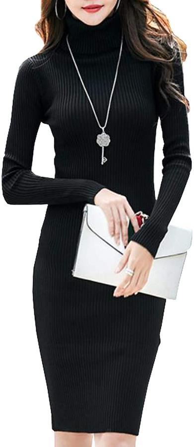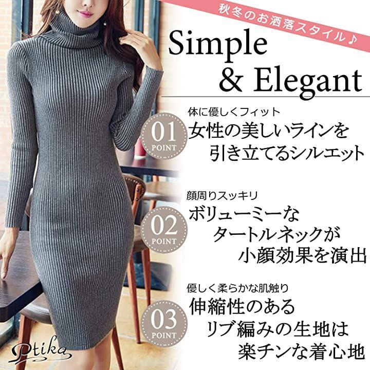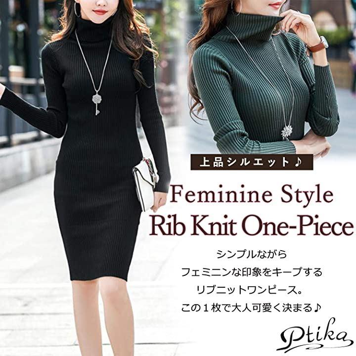 Ptikaニットワンピースレディース秋冬タートルネックタイト長袖アクサセリー付き