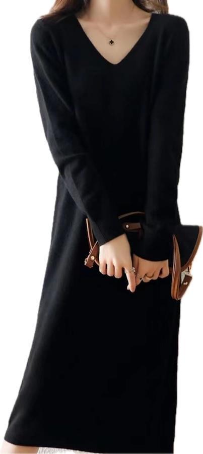 「スタイルアップ」一枚で洗練されたスタイルを実現するVネックニットワンピース。