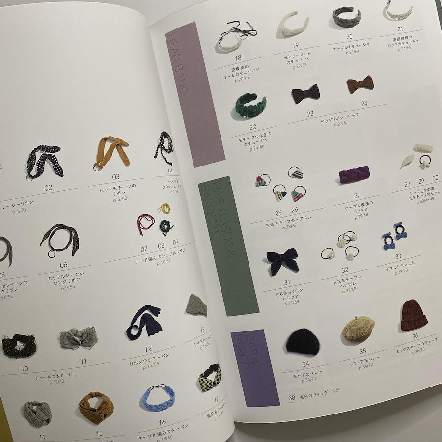 Hand-knitted hair accessories are proposed by hair and makeup artists. Featuring 38 pieces, including hair ribbons and turbans, presented alongside hairstyles. A collection of hand-knitted hair accessories created through collaboration between hair and makeup artists and knit designers. Introducing 38 versatile itemsâfrom adjustable hair ribbons to trendy turbans and beretsâpaired with hairstyles that complement both bobs and long hair.Paperback: 79 pagesBook Weight: 270 grams