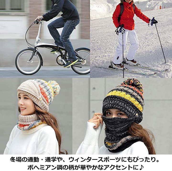 [FUPUTWO]ニット帽ネックウォーマーセットレディース目出し帽マスクポンポン防寒暖かいスノーボード秋冬