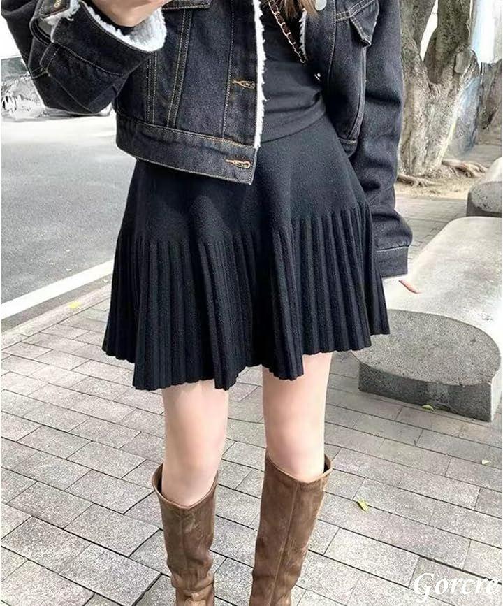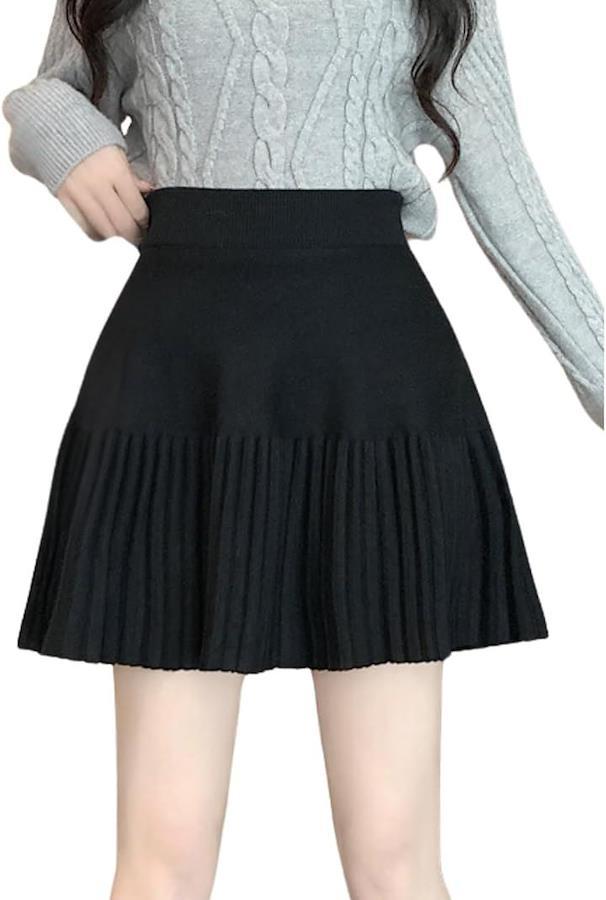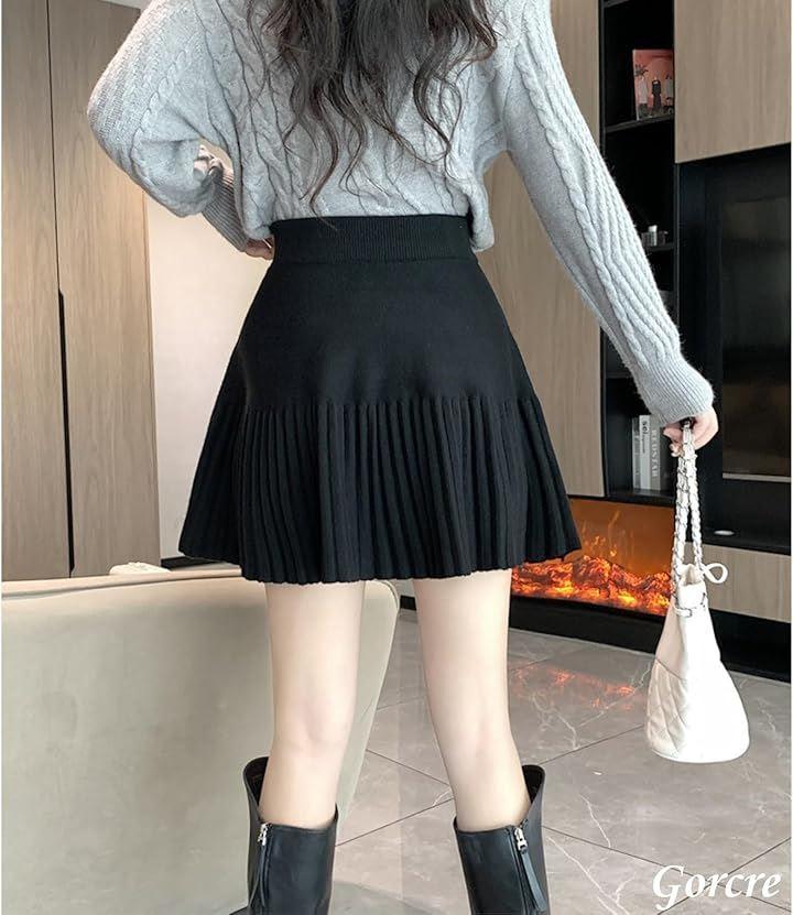 下半分は細かいプリーツが可愛くふんわりエレガントで脚長効果♫ウエストキュッとスッキリと、プリーツフレアで大人かわいい。スタイルアップが期待できちゃうニットミニスカートです。