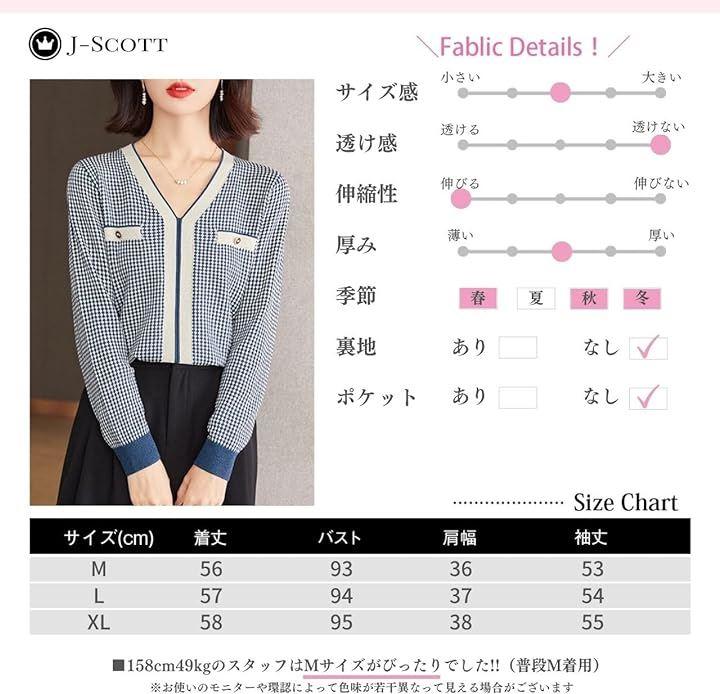 着丈/バスト/肩幅/袖丈M: 56/93/36/53L: 57/94/37/54XL: 58/95/38/55*158cm/49kgのスタッフの場合:Mがジャストサイズでした(普段M着用)