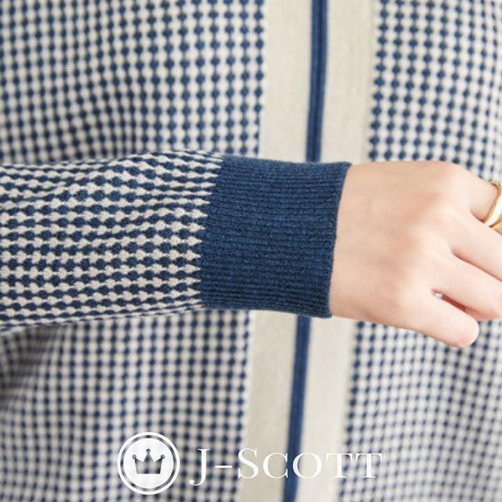 カラーブロックのチェック模様が、スタイリングを都会的に仕上げてくれるニットトップス。