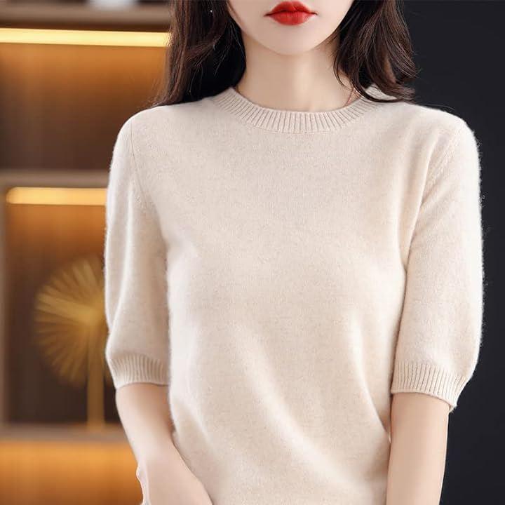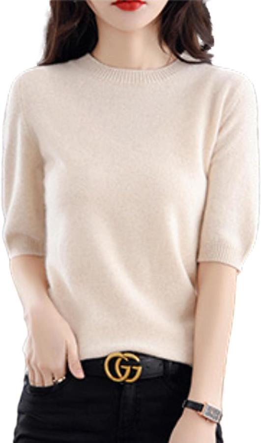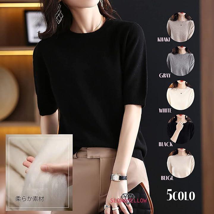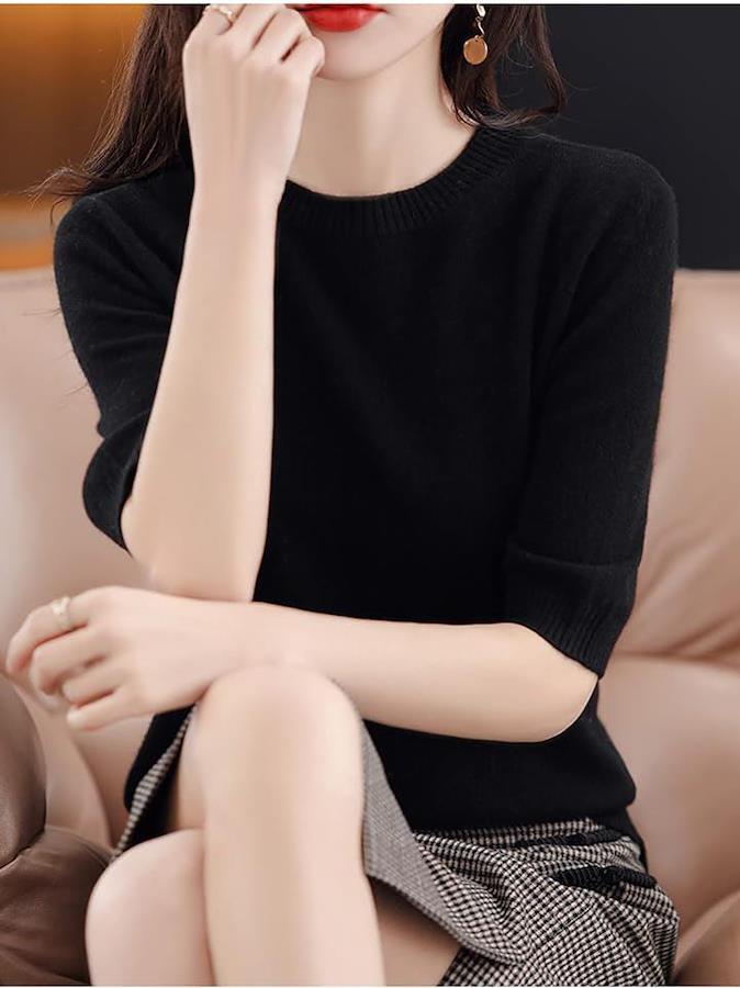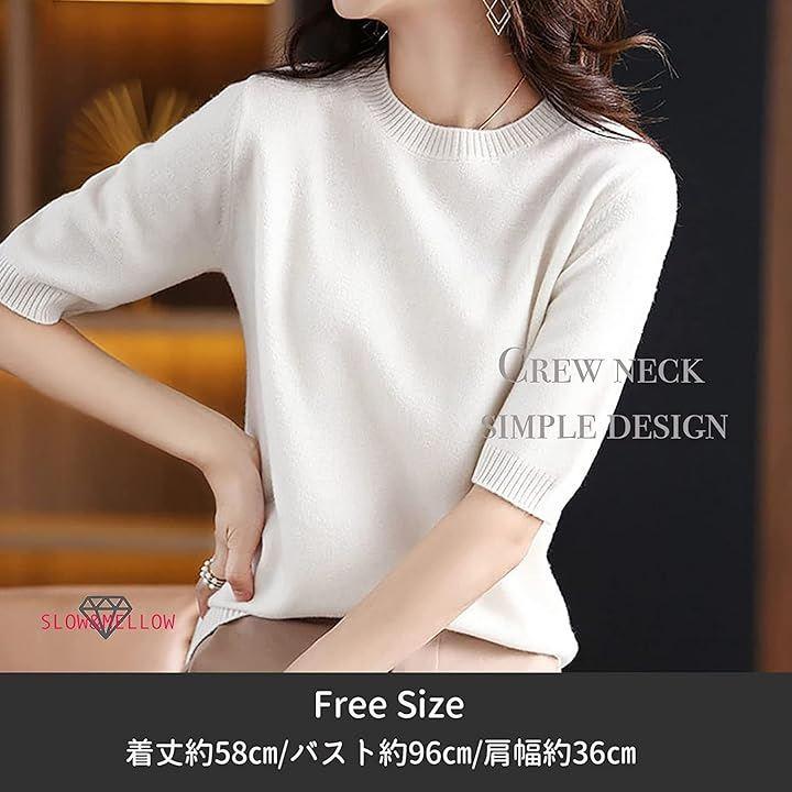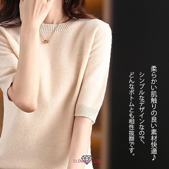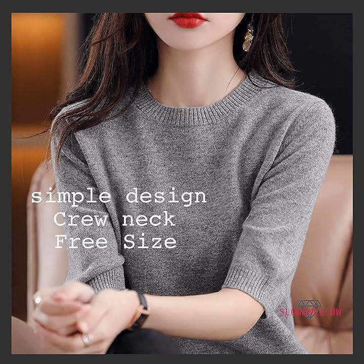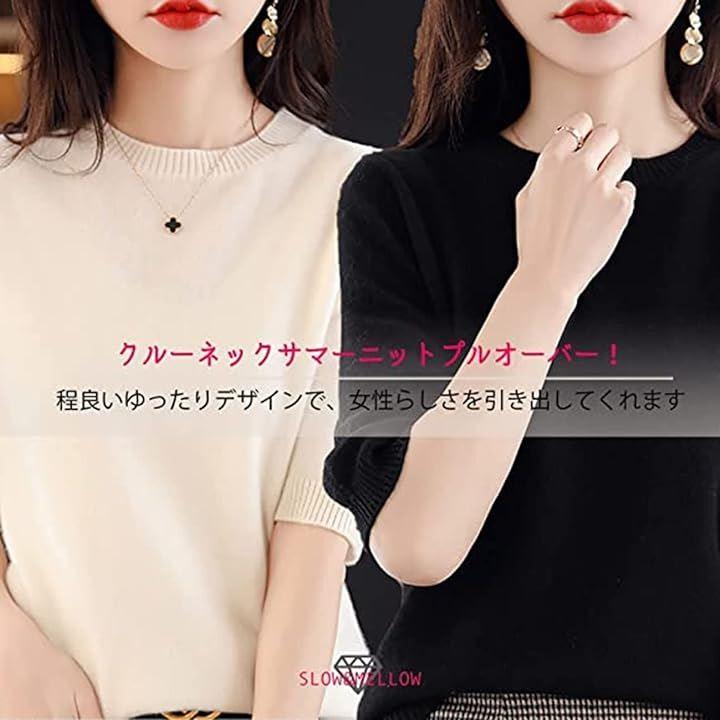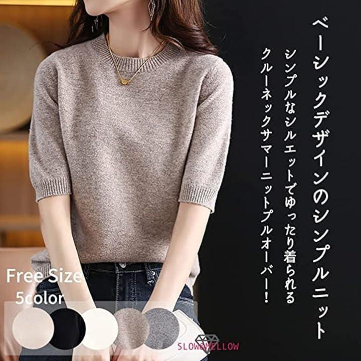 シンプルなシルエットでゆったり着られるクルーネックサマーニットプルオーバー。
